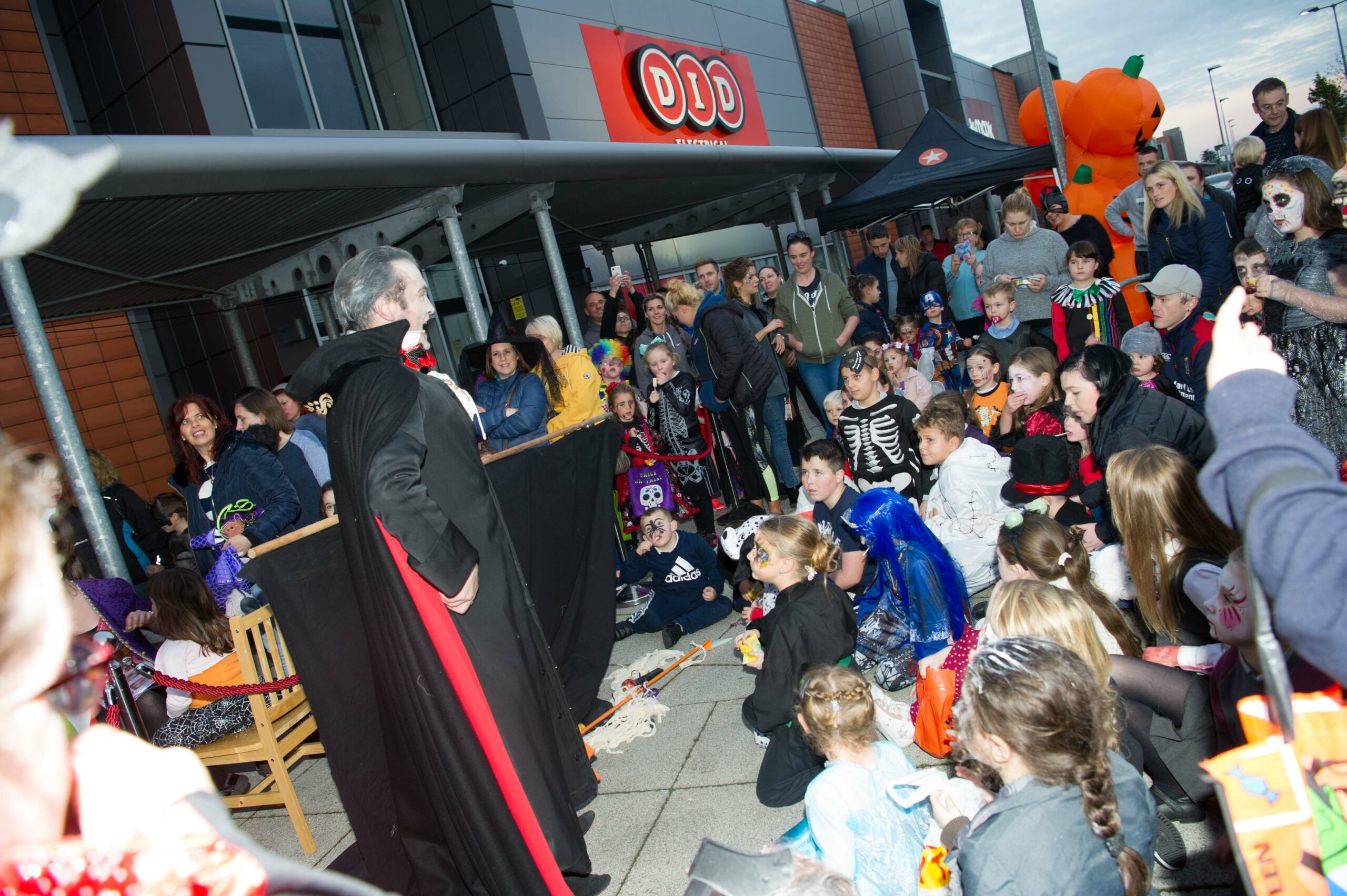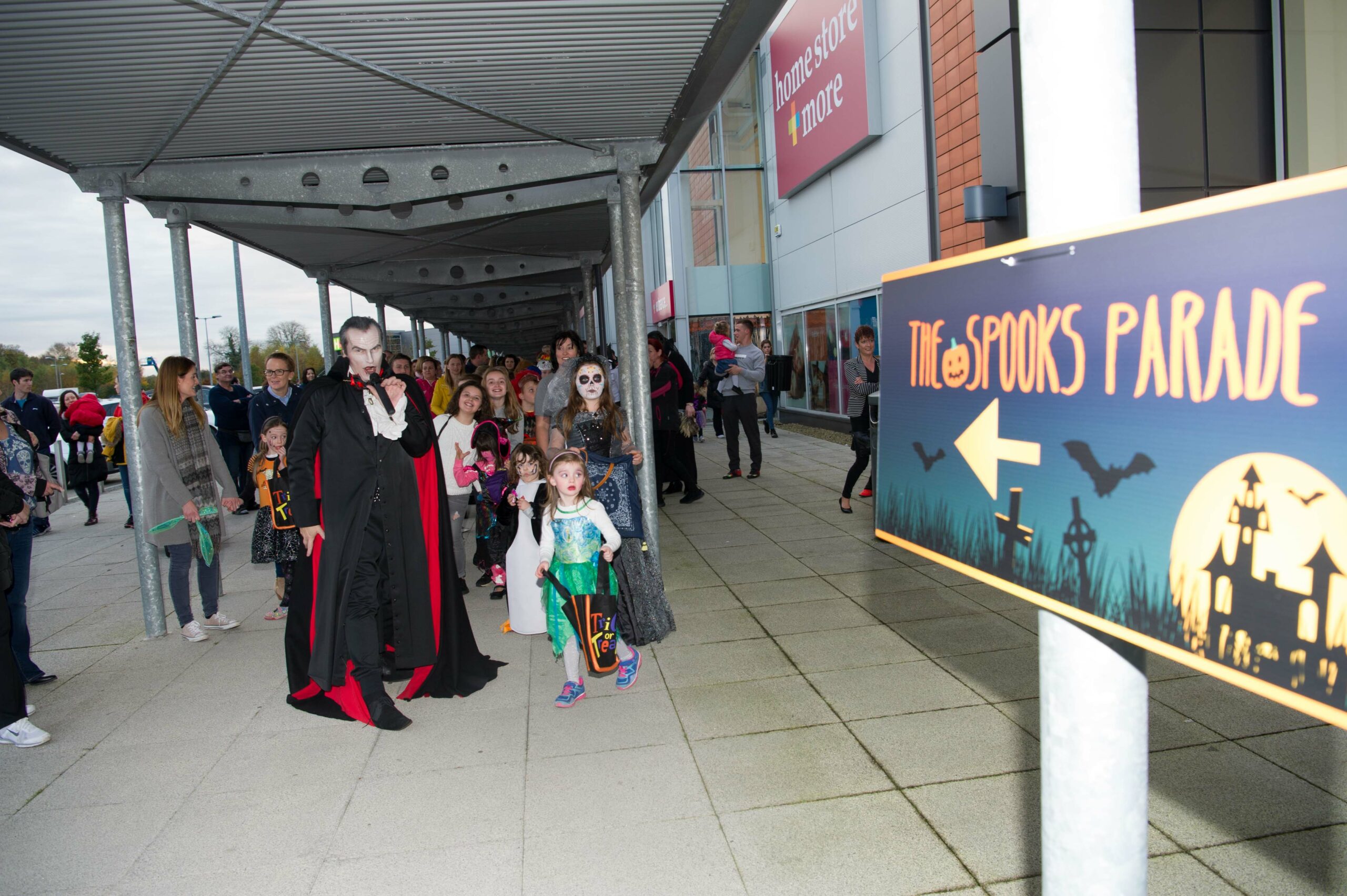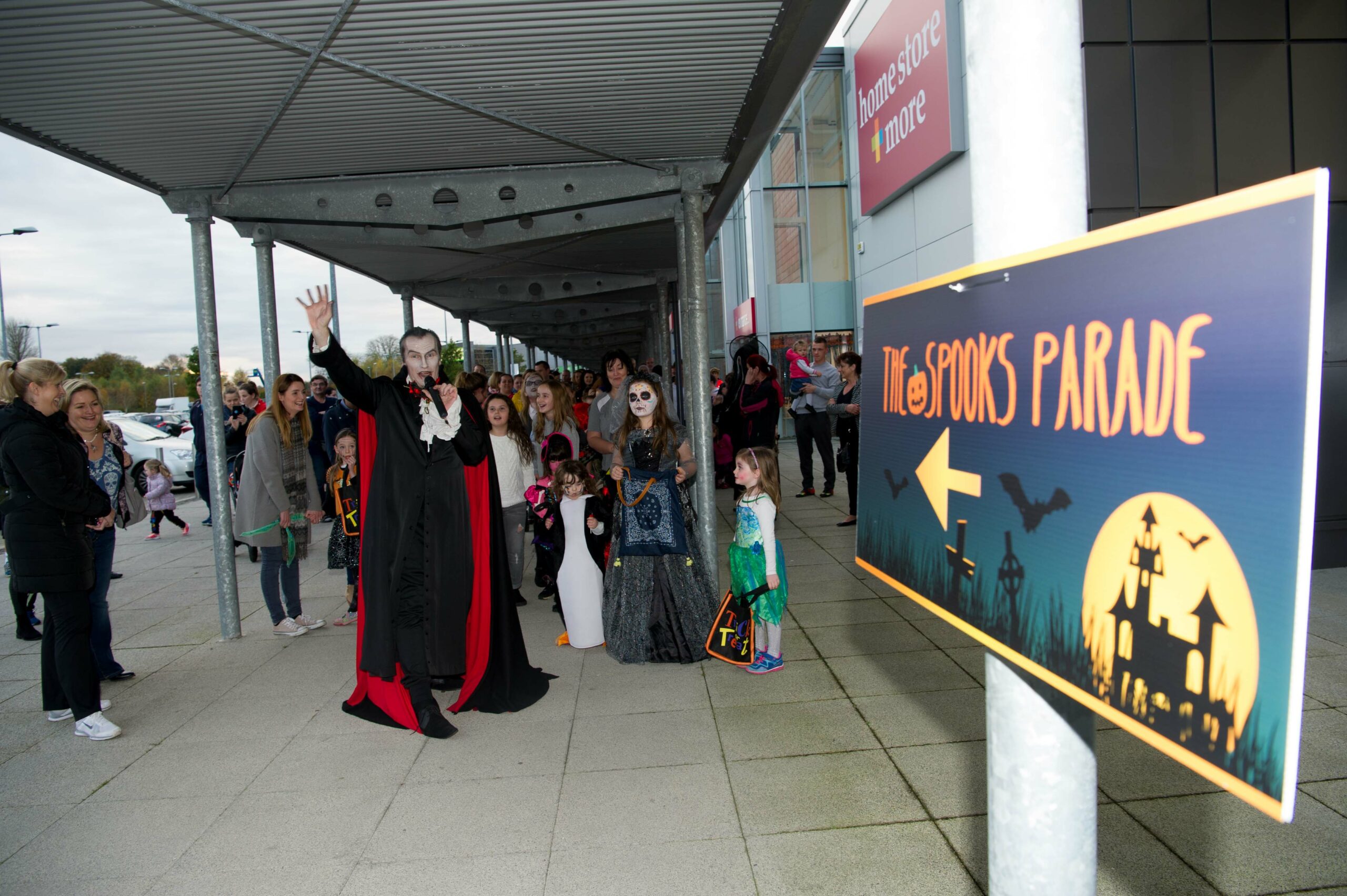 Count Dracula led large crowds of young children and their parents on a unique Spooks Parade to kick off the Halloween season at Nevan Retail Park. Local kids went store to store on a spooky adventure, trick or treating staff and customers alike. And, not to be outdone, many of the staff of the stores were kitted out in their ghoulish best. We had an amazing turnout so thanks to everyone that came along!